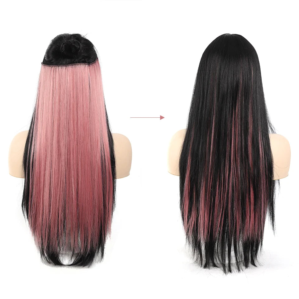 20 Inch Long Synthetic Straight Clip-In Hair Extensions for Women - Vibrant Colors, Synthetic Fiber, Easy to Use