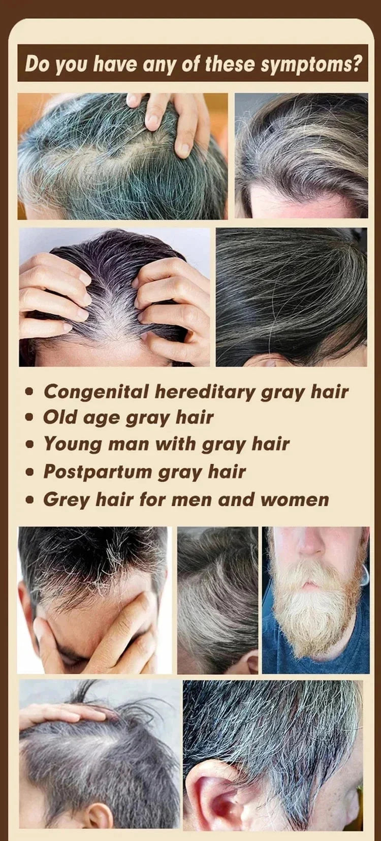 Suitable For: Treats teenage gray hair, postpartum gray hair, hereditary gray hair, middle-aged and elderly gray hair, anti-hair loss, hair care, and is safe and effective for men, women and pregnant women!
