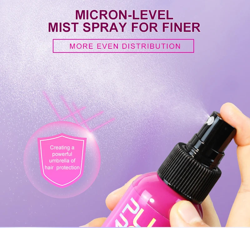 Before using heat tools - spray a generous amount of mist onto the hair, ensuring thorough coverage of each strand, then proceed with styling.