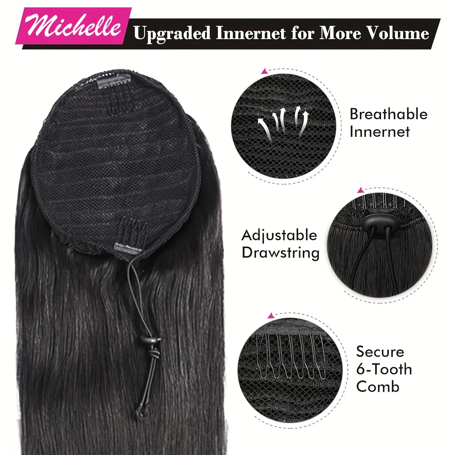 Straight Ponytail Human Hair Extension With Clip In Drawstring Ponytail Straight Brazilian 100% Human Hair Natural Clip Ponytail